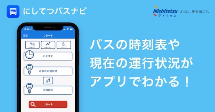 "にしてつバスナビは、西鉄バスの路線や運行状況を検索できるスマートフォンアプリです。地図や位置情報を利用して目的地までのバスを直感的に検索することができ、直通のバス情報だけでなく、バスと電車の乗り換えも検索することができます。また、過去に検索した組み合わせを保存したり、バスの運行情報を追いかけたりすることもできます。